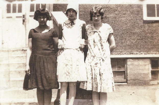 Aunt Lynn and classmates in front of Bucknell Iowa high school